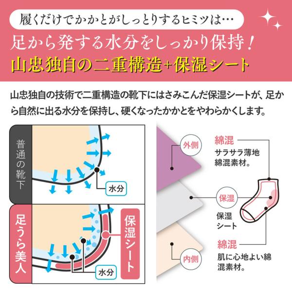 靴下 足うら美人レギュラータイプ(20-22cm、22-24cm、24-25cm) かかとケア靴下 角質ケア ひび割れ 乾燥対策 潤い 保湿 冷え 山忠 温むすび