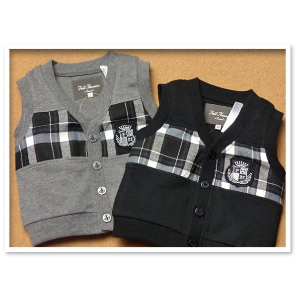 ベビー服 男の子 ベスト フォーマル 前開き チェック切替 エンブレム ワッペン装飾 イカリボタン 男児 ベビー 80cm 90cm 95cm メール便OK