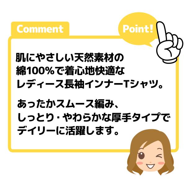肌にやさしい天然素材の綿100%で着心地快適なレディース長袖インナー。