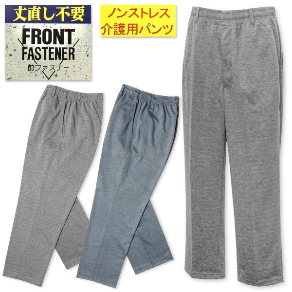 送料無料 紳士 メンズ 丈直し不要 ストレート パンツ 介護用 ジャージ ダンボールニット 前ファスナー ウエストゴム シニア向け M L LL 3L ks-0027