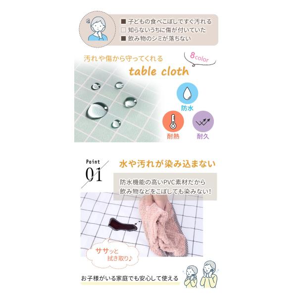 テーブルクロス 撥水 北欧 おしゃれ 140×180cm ビニール 耐熱 滑り止め 長さ調節 格子柄 140 cm 180 cm 食卓 カバー 長方形 テーブルマット ポイント消化