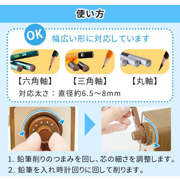鉛筆削り/えんぴつ/鉛筆/色えんぴつ/色鉛筆/削り/手動/調節/調節可能/インテリア/スタイリッシュ/シンプル/シンプルデザイン/お洒落/勉強/オフィス/鉛筆削り器/おしゃれ/かわいい/コンパクト/えんぴつ削り/調節機能付き/子供/キッズ/プレゼント/小学生/中学生/高校生/大学生/こども/えんぴつけずり/おすすめ/調整/削りすぎ防止/文具鉛筆削り/三角鉛筆/円形鉛筆/六角形鉛筆/太さ調整機能/手動式鉛筆削り/学校/事務用/卓上/ブラック/ブラウン/入学祝い/入学準備/文房具/ギフト/ミニ/優良配送/送料無料