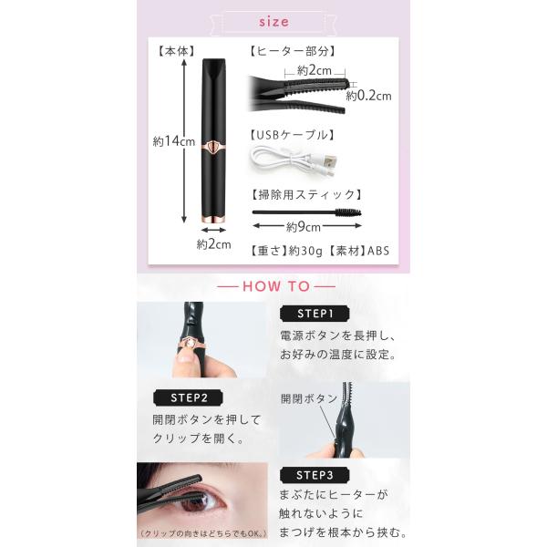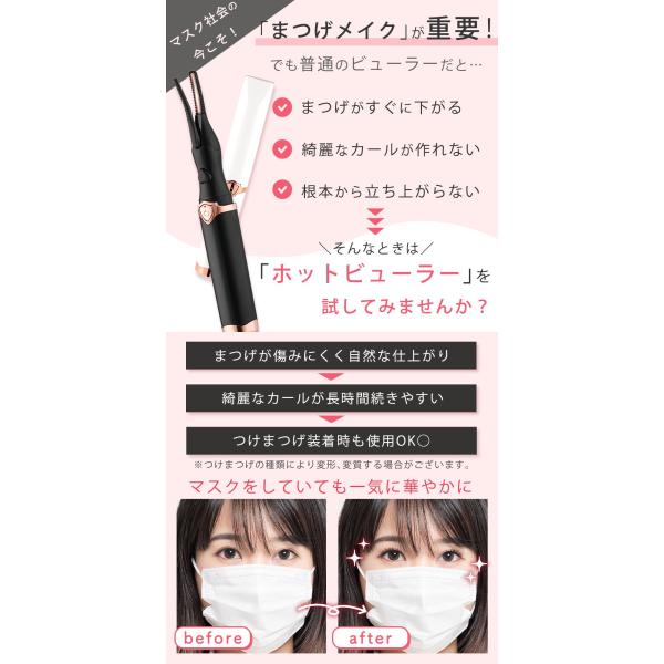 ホットビューラー/usb充電/ホットカーラー/2way/クリップ/コーム/ビューラー/まつげ/アイラッシュカーラー/まつ毛ビューラー/まつ毛カーラー/まつげカーラー/3段階温度/まつげメイク/速熱/充電式/カール/上向き/ホット/長時間キープ/つけまつげ/マスクメイク/マスカラ/自動電源切れ/自動オフ/適温/適温知らせ/持ち運び/クリーニング/掃除用スティック/かわいい/コンパクト/持ちやすい/軽量/ギフト/プレゼント/レディース/ホワイト/ブラック/優良配送/送料無料