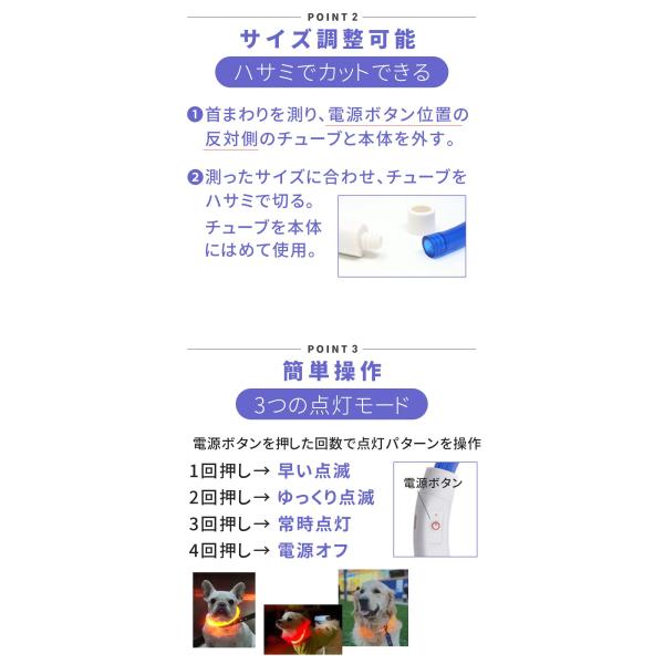 光る/首輪/光る首輪/LED/LED首輪/ペット/犬用/犬/ワンちゃん/わんこ/調節/長さ調節可能/調節可能/散歩/夜/深夜/夕方/朝/早朝/充電/充電式/公園/暗い夜道/安全/安心/明るい/点滅/点灯/事故/事故予防/充電ケーブル/充電ケーブル付き/ペットグッズ/小型犬/中型犬/大型犬/発光/発光首輪/腕/腕輪/優良配送/送料無料/