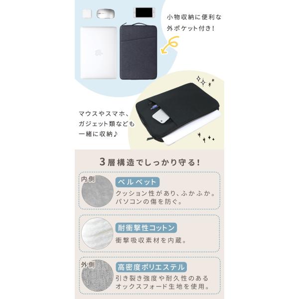 NPC/PC/ノートパソコン/ノートPC/PCケース/PCバッグ/パソコンバッグ/パソコンケース/スタイリッシュケース/スタイリッシュ/コンパクト/保護バッグ/ノートパソコンケース/インナー/インナーケース/カバン/PCカバン/収納/衝撃吸収/保護/ビジネスバッグ/ビジネスケース/MacBook/撥水/撥水加工/持ち運び/防水/おしゃれ/かわいい/ipad/軽量/13.3/14.1/15.3/13.3インチ/14.1インチ/15.3インチ/ipad/軽量/13.3/14.1/15.4/15.6/13.3インチ/14.1インチ/15.4インチ/15.6インチ/パソコンバック/タブレット/タブレット教材/タブレットケース/オンライン学習/学習/小学生/中学生/高校生/大学生/学校/会社/大学/オフィス/女性用/男性用/男の子/女の子/子供/大人/レディース/メンズ/男女兼用/多色/無地/グレー/ブラック/ネイビー/シンプル/手持ち/ハンドル付き/手提げ/持ち手付き/ポケット付き/クッション/Wファスナー/ふわふわ/縦型/インナーケース/出張/マウス収納/パソコンを入れるバック/優良配送/送料無料