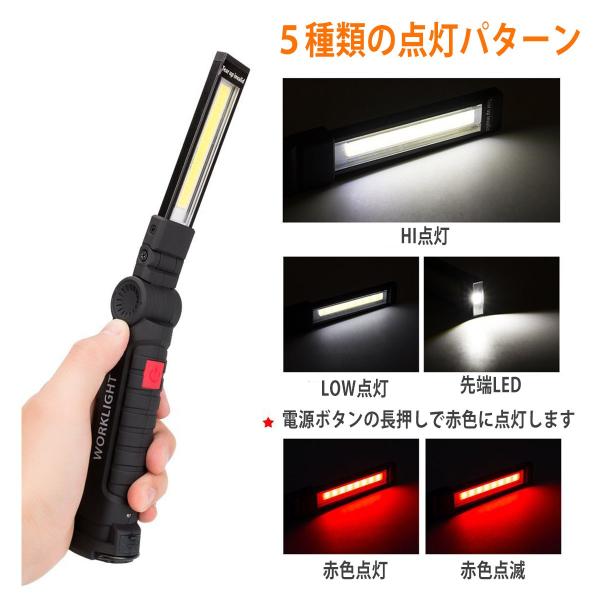 商品名:ワークライト LED 充電式 デスクライト COB 車 防水 プレゼント 充電 作業灯 led作業灯 デスクライト マグネット フック付き アウトドア キャンプ 釣り