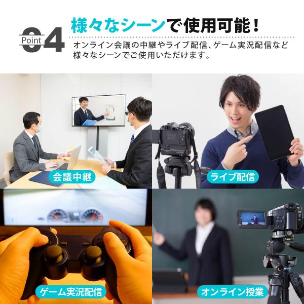 オンライン会議の中継やライブ配信、ゲーム実況配信など様々なシーンでご使用いただけます。