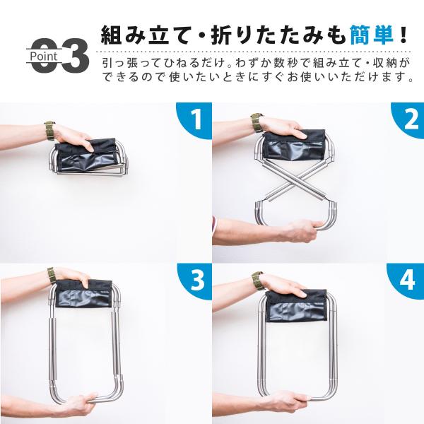 軽量ながら高強度の耐荷重80kg。大人の男性でも安定します。折りたためば驚きのポケットサイズ。重量もわずか320gなので持ち運びが楽々です。