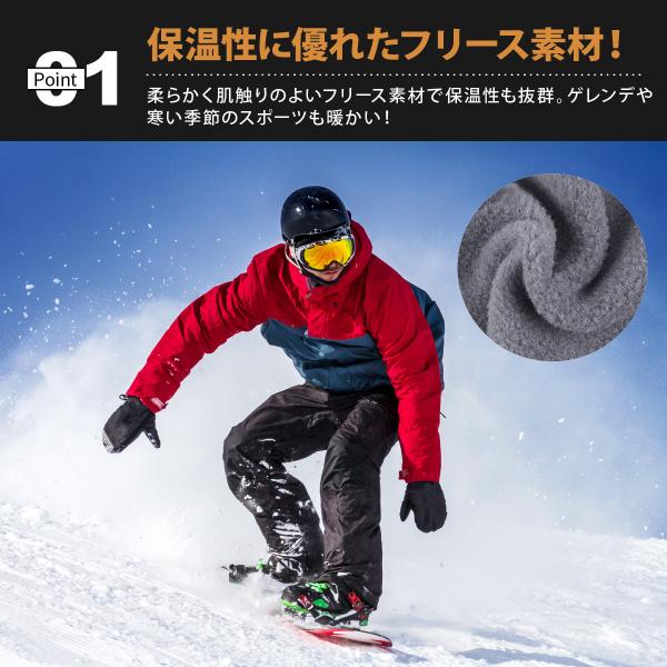 柔らかく肌触りのよいフリース素材で保温性も抜群。