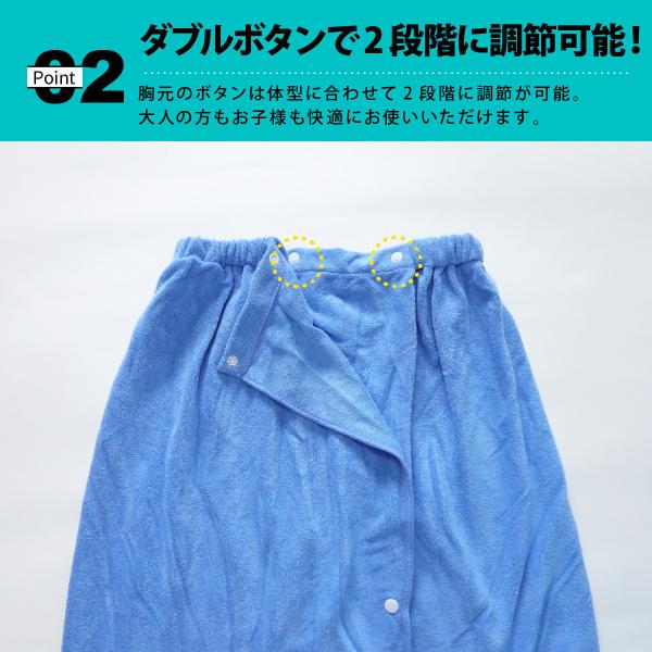 胸元のボタンは体型に合わせて2段階に調整が可能。大人も子供も快適にお使いいただけます。