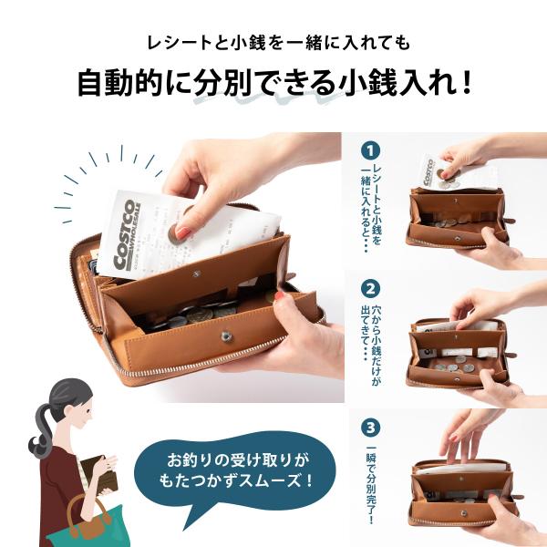 レシートと小銭が自動で分かれる便利な機能がある長財布です。
