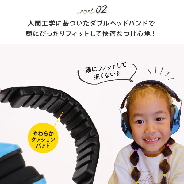 吸音性の高い厚みのあるスポンジフォームでお子様の耳を360°すっぽり包みます。