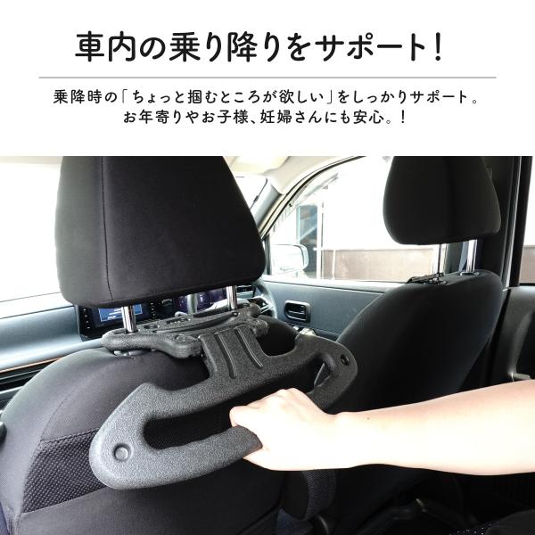 ヘッドレストに差し込むだけの簡単取り付けで、乗り降り時のサポートや車内での安定感を向上します。