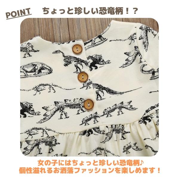 ベビー キッズ ワンピース 女の子 夏服 80 90 半袖 プレゼント 白 ホワイト 贈り物 双子 恐竜柄
