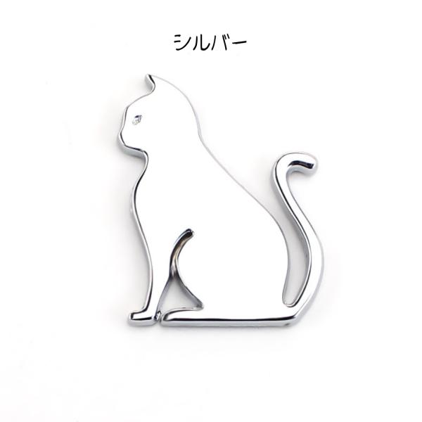 猫 エンブレム 車 ねこ ステッカー シール 立体 金属 メッキ デカール 傷隠し シルバー