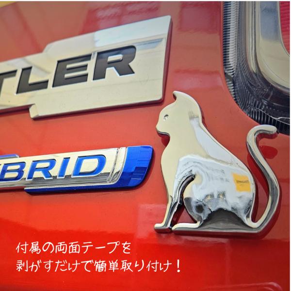猫 ステッカー 車 ねこ エンブレム 立体 金属 メッキ デカール 傷隠し シルバー