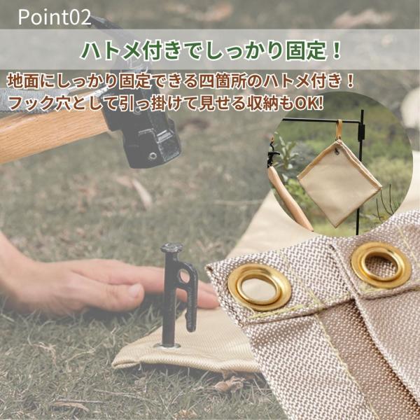 ・四隅にハトメ付きなので地面にしっかり固定可能!ハトメをフック穴代わりにして吊るして保管することも可能です。
