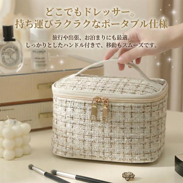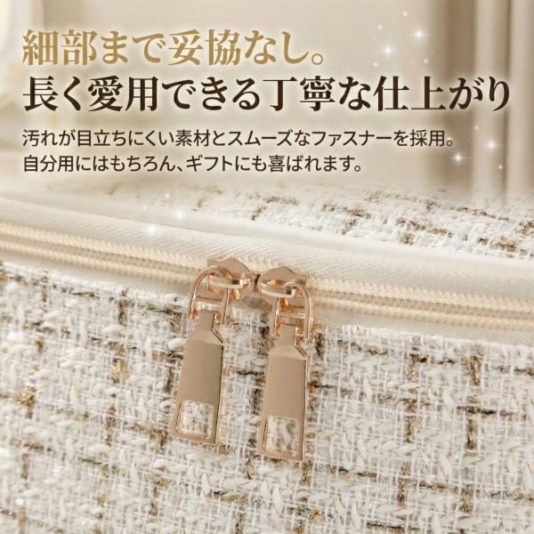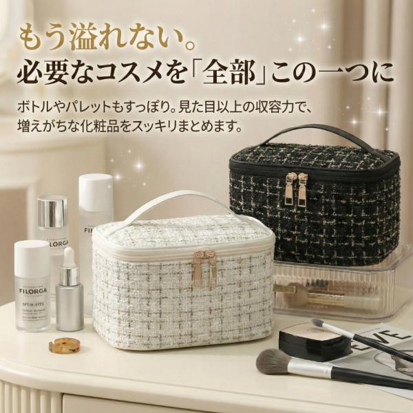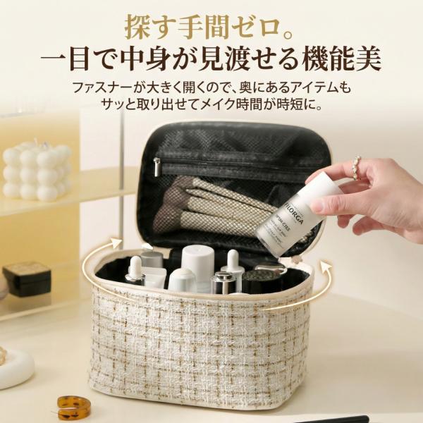 メイク道具はもちろん、スキンケアセット、ヘアアイテム、アクセサリー、小物入れとしても幅広く使えます。