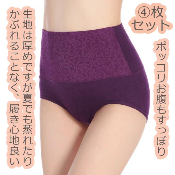 4枚セット ショーツ レディース 綿 コットン 深め ハイウエスト 下着 インナー パンツ すっぽり お得 母の日