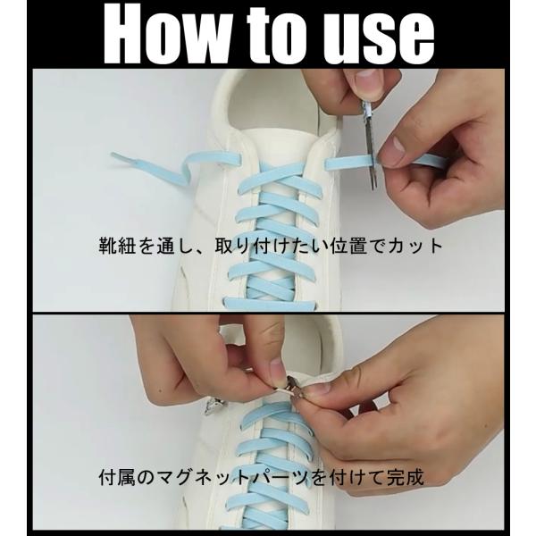 あなたは今まで何回靴ひもを結びましたか?また、これから何回靴ひもを結びますか?靴紐を踏んでこけそうになる、雨の日に限って解けている!などから解放します!お持ちのシューズにこの靴紐を付け替えるだけ!スニーカーやランニングシューズはもちろん、ビジネスシューズや革靴にも黒の紐がばっちり!一度取り付けてしまえば、靴紐がほどけた時、履く時の煩わしさから解放されます。靴紐自体が伸縮性のあるゴム素材なので、適度な締まり具合があり、脱ぎ履きの際も開口部を広げて着脱できます。大人用のメンズシューズ、レディースシューズはもちろん、お子様用のキッズシューズにも重宝します。まだ靴紐を結べないお子様も、これさえあれば、マジックテープの靴から解放されます。