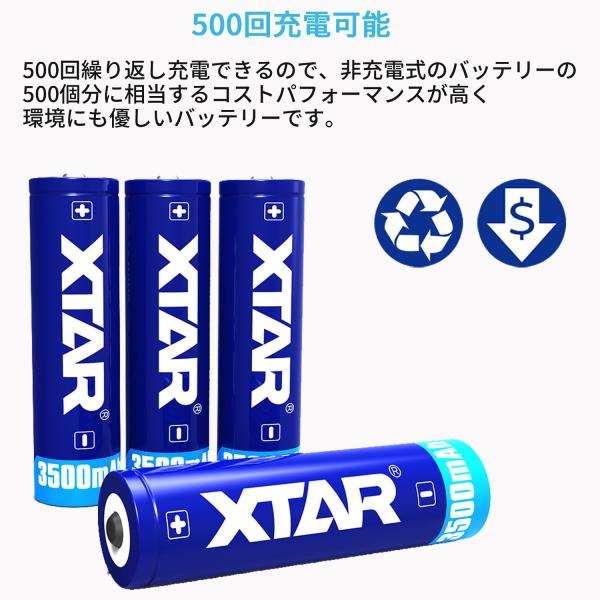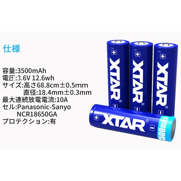 XTAR 18650 3500mAh 3.6V 12.6wh 充電式 リチウムイオン電池 バッテリー 保護回路付き リチウムイオンバッテリー リチウム電池 充電池 電池 Li-ion