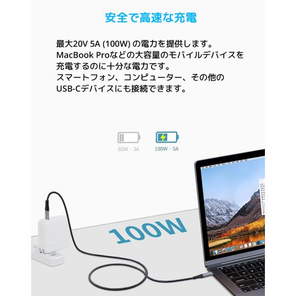LDLrui USB C to USB C ケーブル 30cm 90cm 1.8m 3m Thunderbolt 3/4 充電ケーブル Type-C サンダーボルト 4K@60Hz 10Gbps 急速充電 タイプC 超高速 データ転送