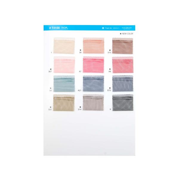 細デニールの糸を使用した、ダイヤ目のナイロンチュールです。繊細で透明感があるため肌なじみの良い素材です。