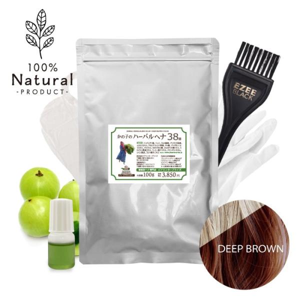 日本郵便 発送 ⇒ 日祝発送× | かの子のハーバル ヘナ 38番 100g 無料ハケセット付 | ディープブラウン ヘナカラー 白髪染め 毛染め オーガニック 無添加