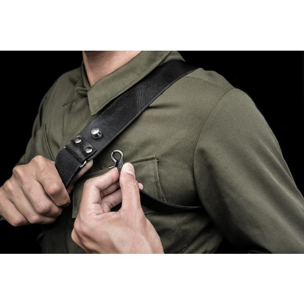 ショルダーストラップの代わりにヴォータンクラフト3点式スリングストラップを装着すれば前傾姿勢でバイクを漕いでもしっかりバッグを背中に保持。撮影場所までのバイクライディングに集中できます。 汎用性が高い3点式スリングストラップはトゥルーパーカメラバッグだけでなく、着脱式のショルダーストラップを採用する多くのショルダーバッグにもご利用いただけます。