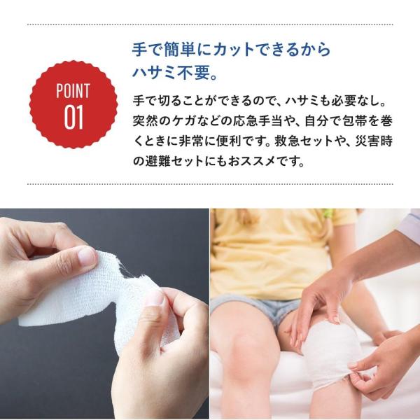 手や関節部分などに柔軟に巻くことができ、救急セットや災害時の避難セットにおすすめです。