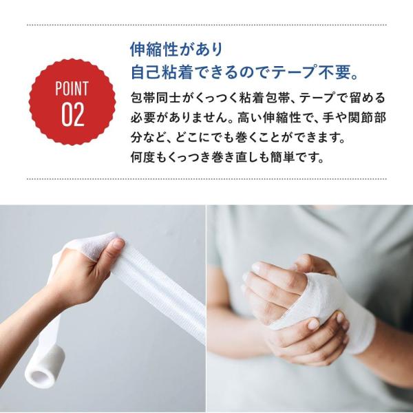 この包帯は、伸縮性と自己粘着性を備えており、テープで留める必要がありません。
