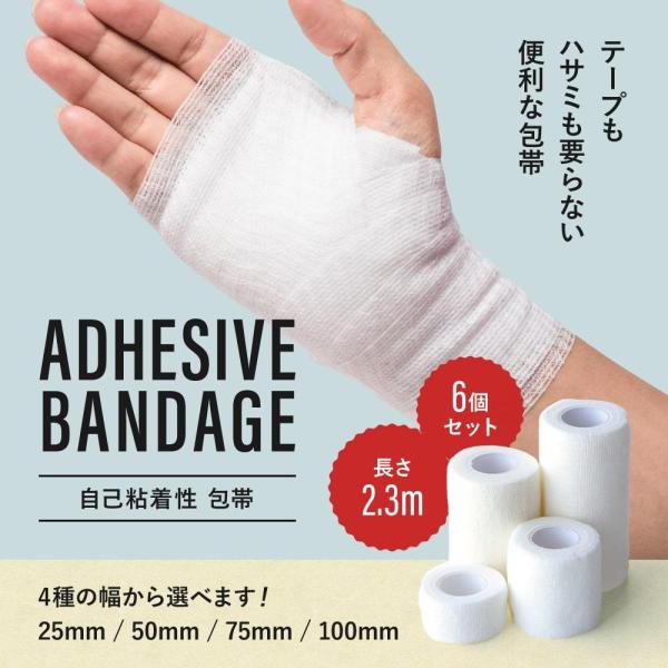 包帯 伸縮 粘着 幅75mm 長さ4.5m 6個セット くっつく 自己粘着 テープ不要 サポーター アスレチックテープ