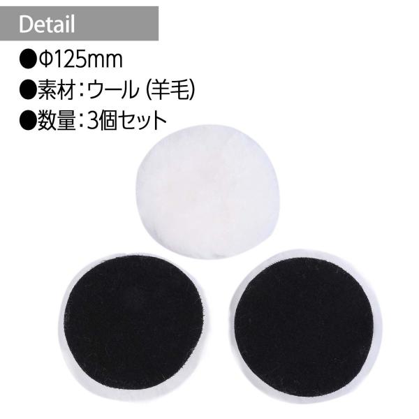 ウールバフ 羊毛バフ ポリッシャー 125mm 3個セット 車磨き 研磨 艶出し マジックテープ 仕上げ 電動ポリッシャー バフ