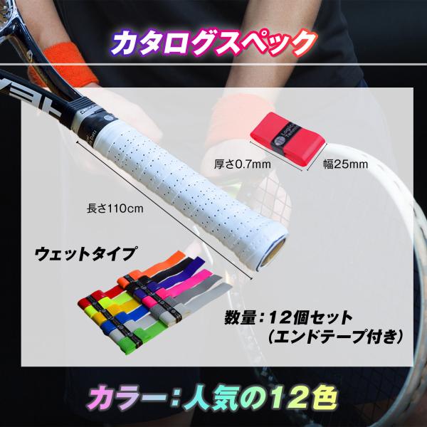 グリップテープ ウエット タイプ 12個セット 穴無し テニス バドミントン 黒 白 カラー