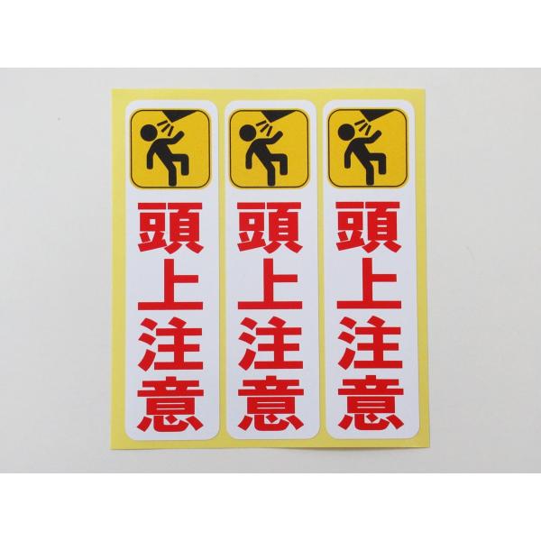 頭上注意 シール ステッカー 縦型 小サイズ3枚セット 防水 再剥離仕様 工事現場 看板 安全標識 建築現場 建設 工場 日本製585