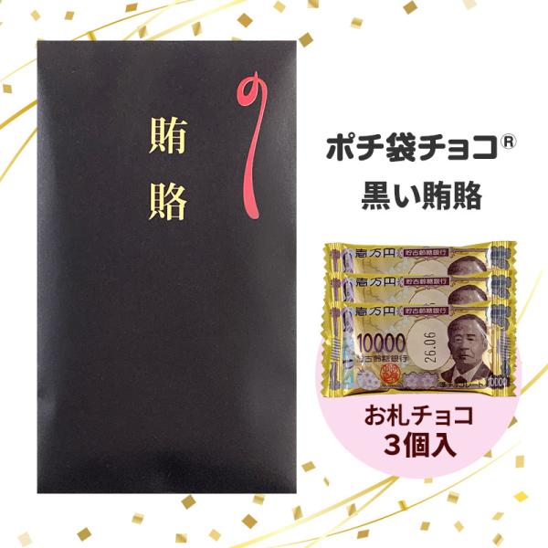 在庫限り!ポチ袋チョコ(R) 賄賂チョコ 黒 お札チョコ3個入 バレンタイン 義理チョコ おもしろチョコ 面白チョコ オモシロ 笑えるチョコ ばらまき ギフト