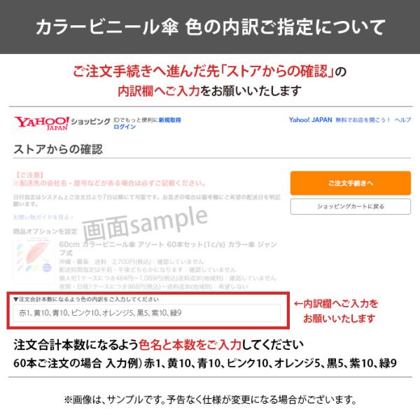 当店オリジナル商品 カラービニール傘 60cm アソート 60本セット お好きなカラーをお選びください