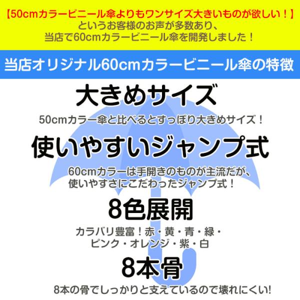 60cm カラービニール傘 アソート 60本セット(1c/s) カラー傘 ジャンプ式
