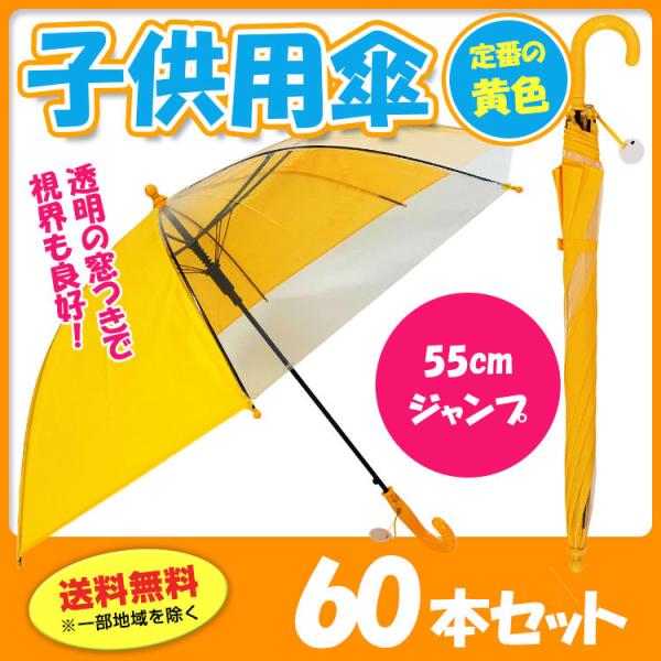 予約注文2月下旬出荷予定 学童傘黄色 子供用傘 55cmジャンプ 透明窓付 60本セット(1c/s)(301749)