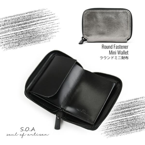 ミニ財布 箔 レディース レザー 小銭 カード 使いやすい Gunmeta ガンメタ 本革 ラウンド かっこいい シンプル YKK エクセラ ミニマル ラウンドファスナー S.O.A