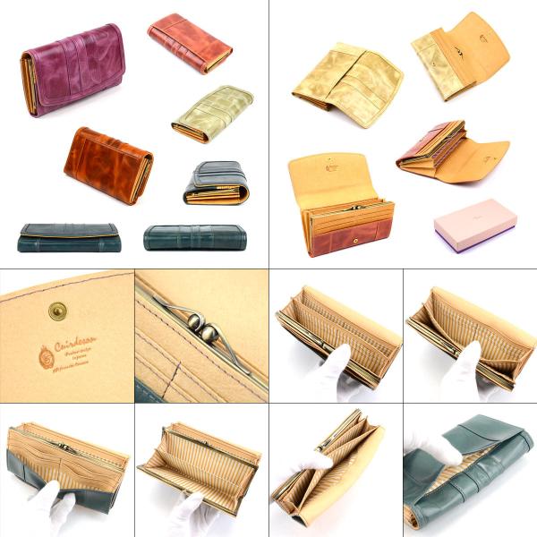 がま口 長財布 レディース 本革 がまぐち ツヤ感 エレガント 大容量 Cuirdeson フラップ かぶせ 口金 カード沢山