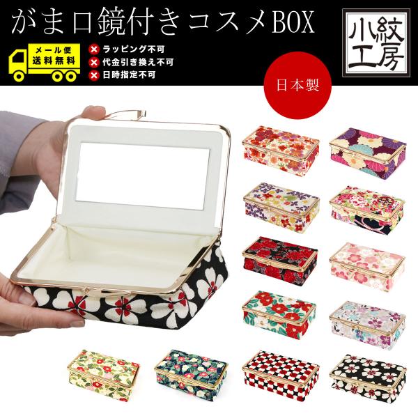 化粧ポーチ コスメボックス 鏡付き 和柄 がま口 がまぐち 和KOMONO 小紋工房 縮緬 日本製 和雑貨 メール便