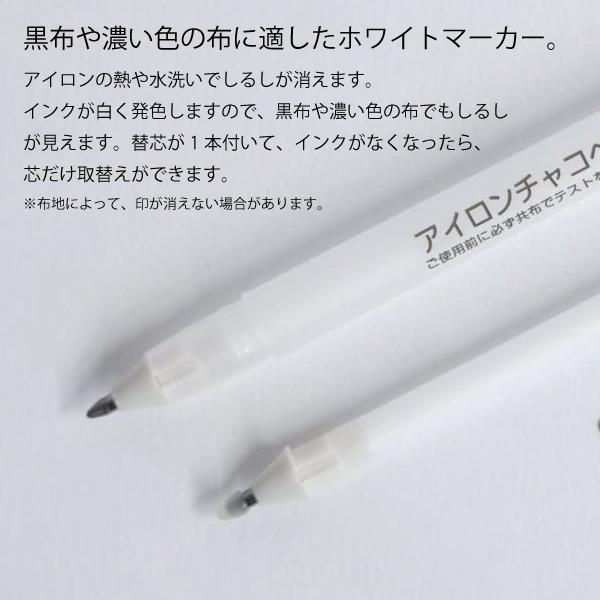 インクが白く発色しますので、黒布や濃い色の布でもしるしがよくわかります。