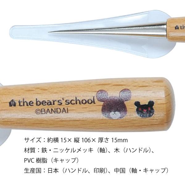 ミササ くまのがっこう 目打ち No.1713品番:16358入数:1サイズ:約横15×縦106×厚さ15mm穴あけや、縫い返しの角だしに便利です。布地に穴をあけるときや、ぬい糸を引き出すときに使用します。先端が鋭利ですので特にご注意ください。