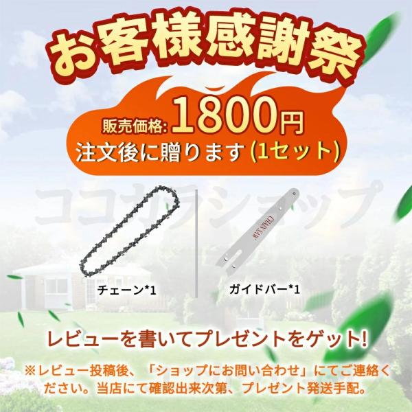 付属品:本体、5段-バッテリー*1、充電器*1、予備の6インチーチェーン*1、チェーンガイド*1作業用手袋*1、安全ゴーグル*1、収納ボックス*1肩掛け*1、