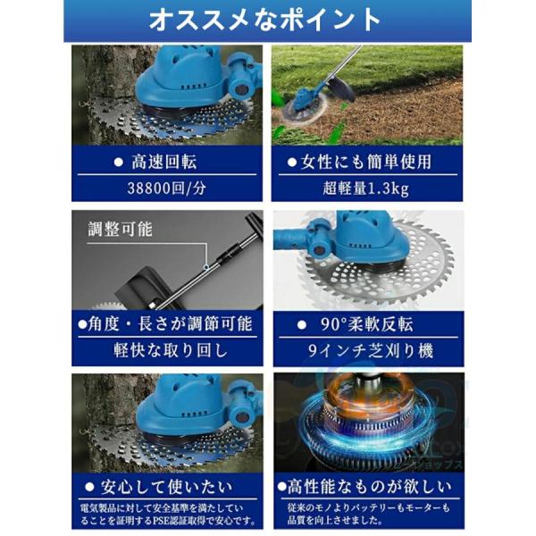 草刈り機 充電式 コードレス 9インチ ブラシレスモータ搭載 電動草刈機 伸縮式 角度調整 グラストリマー ナイロン 3種類替刃付き 枝切り コスパ抜群 軽量 女性
