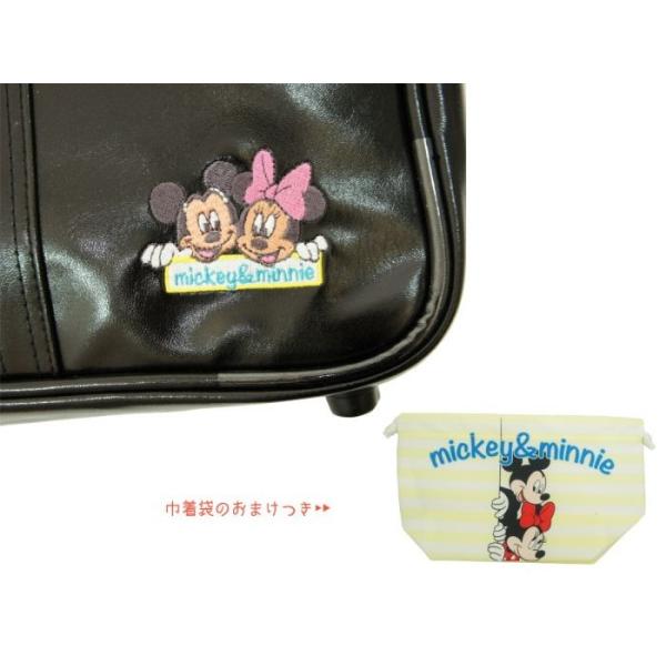 その他仕様:Disney(ディズニー)ミッキー&ミニーの刺繍ワンポイントがかわいいスクールボストンバッグ。