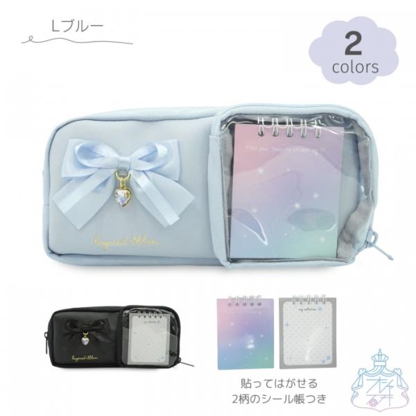 リボンハート ペンポーチ Lブルー