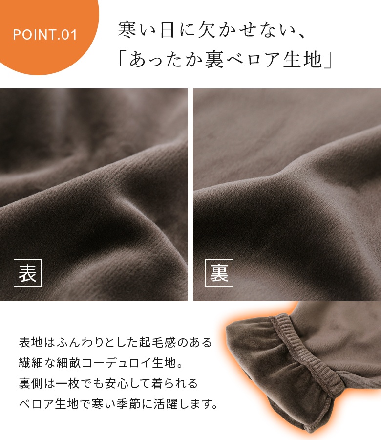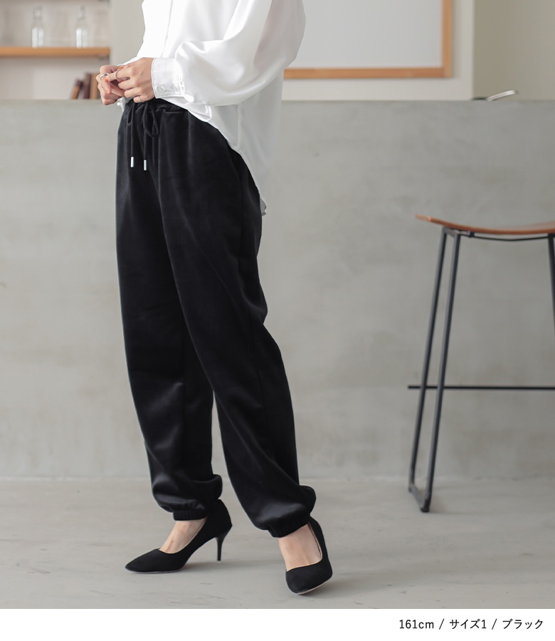 細コーデュロイ×裏ベロアのあったか楽ちんジョガーパンツ。