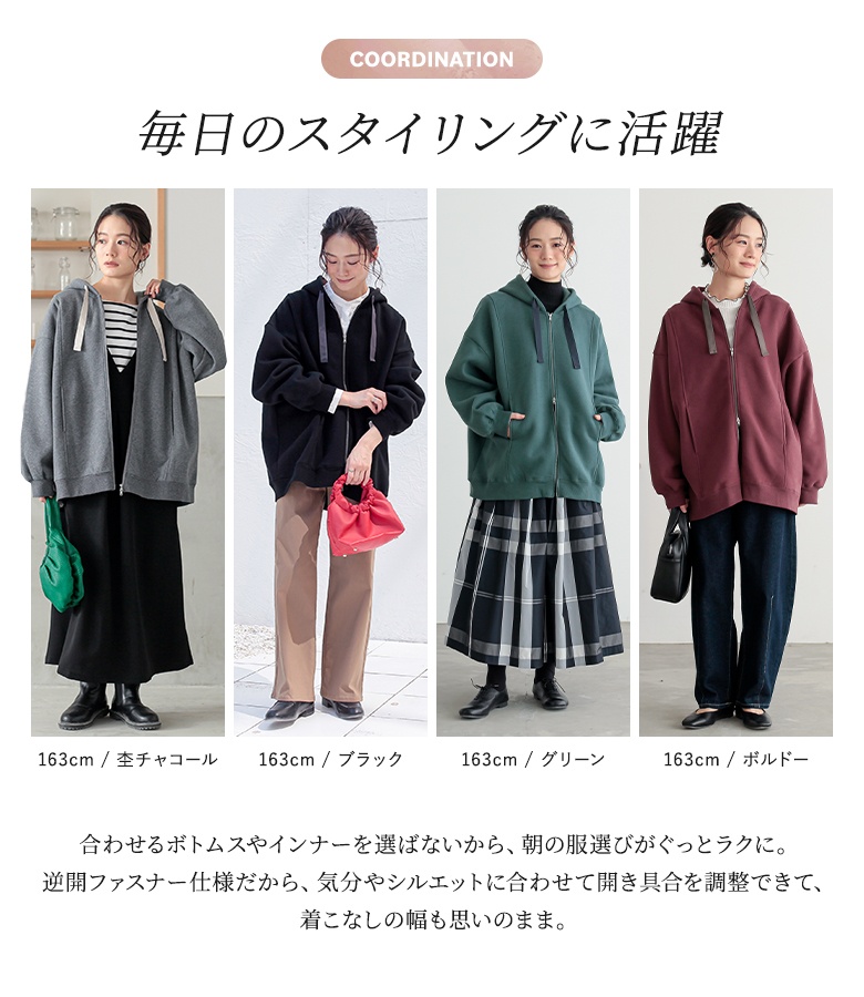 パーカー 裏起毛 レディース トップス 羽織り スウェット 長袖 フード付き フーディー ジップアップ あったか オーバーサイズ 秋 冬 【TP】 トレーナー スエット n'OrLABEL ノアールレーベル 大人女子 大人可愛い お洒落可愛い 大人カジュアル ベーシック ラフ オフィスカジュアル 上品 きれいめ ナチュラル ミドル丈 チュニック丈 ビッグシルエット 配色 無地 ポケット ファスナー ダブルジップ おうちで洗える 防寒 カジュアル シンプル モード マニッシュ キレカジ フェミニン ゆったり ゆる 楽ちん お尻が隠れる S M L LL 3L XL フリーサイズ ぽっちゃり 体型カバー 大きいサイズ プラスサイズ 10代 20代 30代 40代 50代 60代 低身長 高身長 女子会 オフィス 通勤 通学 お買い物 お出掛け 旅行 レジャー アウトドア キャンプ おしゃれ お洒落 トレンド 流行 osharewalker オシャレウォーカー おしゃれうぉーかー レッド 赤 ボルドー パープル 紫 グリーン 緑 グレー 灰色 チャコール ブラック 黒 【ow_en】[ID]14to0h0